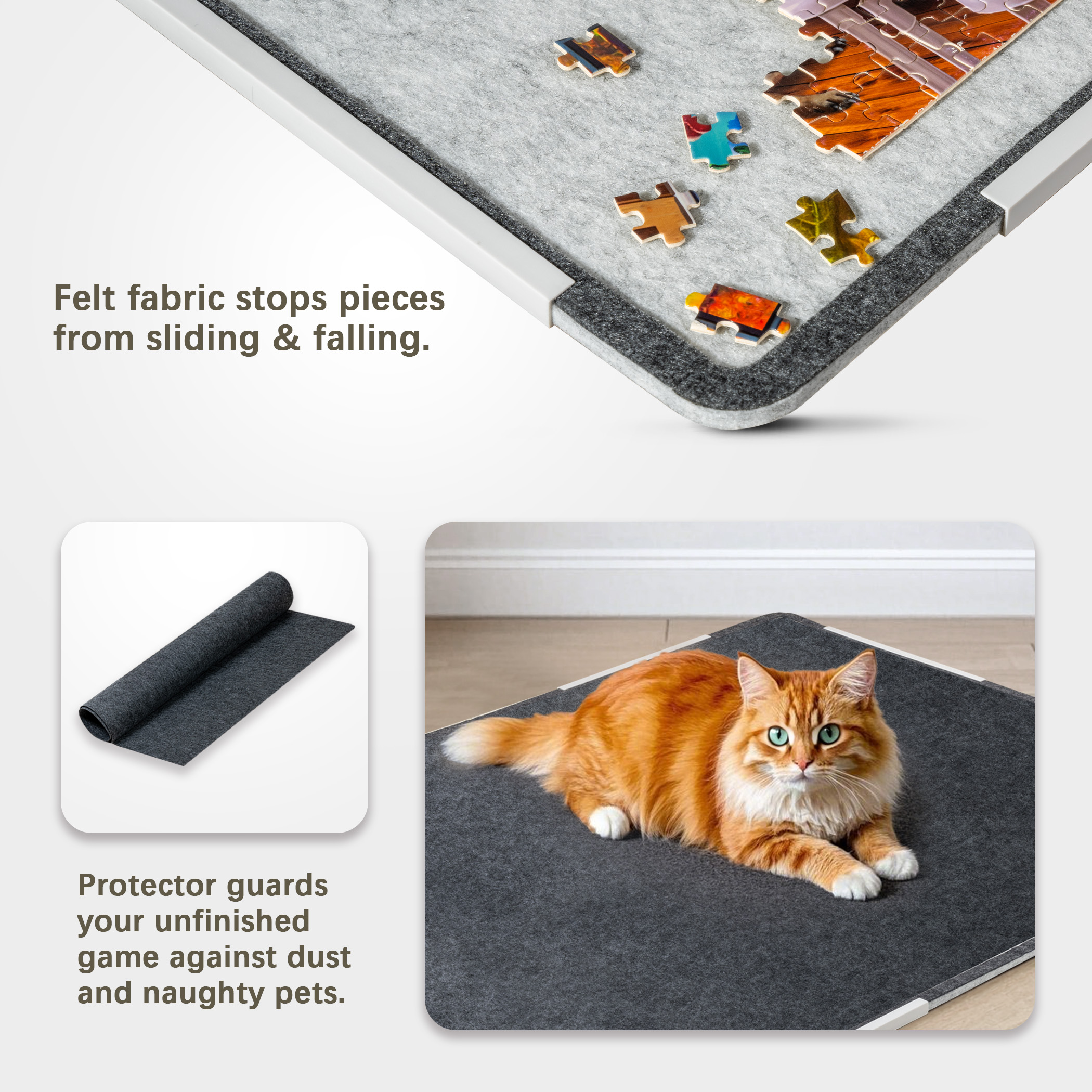 - Felt Cover Enclosed – High-quality felt cover resists dust and ensures easy cleaning. Also prevents accidental loss of puzzle pieces and protects them against naughty claws.